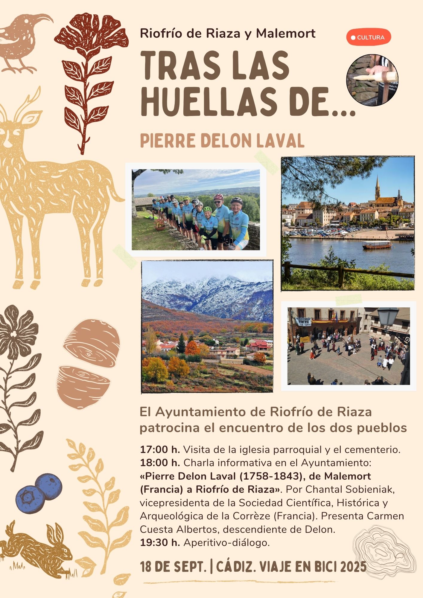 El Albergue Las Navias fue uno de los alojamientos de un grupo de ciclistas franceses, que partieron de Beynat (Francia) hacia Cádiz siguiendo las huellas de emigrantes franceses del siglo XVIII. El albergue está ubicado en el pueblo de Riofrío de Riaza, hogar de uno de estos emigrantes franceses que fue un personaje clave para la historia y el desarrollo del pueblo. Al estar situado en en centro de la ruta ciclista, el grupo permaneció dos días en lugar de uno que era la estancia de cada etapa. La casualidad hizo que desde el albergue se pudiera unir al grupo ciclista y a la familia de descendientes de Pierre Delon. El grupo francés quería conocer a las autoridades del pueblo. Por todo ello, organizamos un encuentro de los pueblos patrocinado por el Ayuntamiento de Riofrío de Riaza. La peregrinación sigue la ruta proporcionada por la investigadora Chantal Sobieniak en su libro «Je plains de quitter Cadix...». Chantal se unió junto con su marido, Stan, al grupo en Riofrío de Riaza. El encuentro se llevó a cabo el 18 de septiembre de 2025.